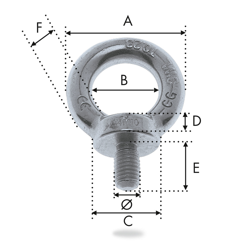 Pour choisir son anneau de levage, vérifier le diamètre concorde avec les dimensions des écrous à fixer dessous (M8-M10, etc…).