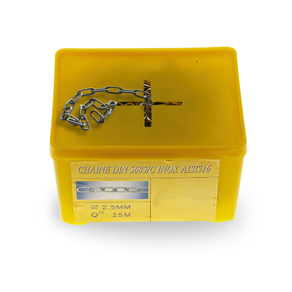 Applications industrielles : La chaîne maille longue en inox est également utilisée dans diverses applications industrielles telles que la manutention de matériaux, le levage de charges lourdes, les systèmes de convoyage.