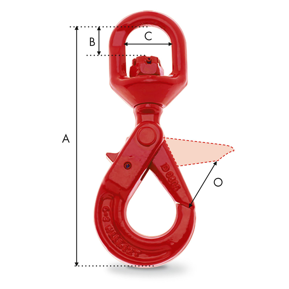 Le crochet de manutention automatique à émerillon est utilisé comme accessoire pour des opérations de levage et de traction verticale et horizontale.
