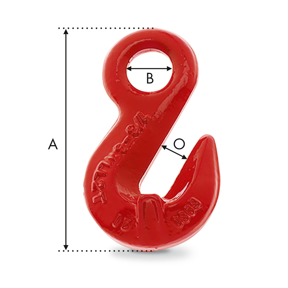 Ce crochet de levage raccourcisseur à oeil vous est proposé en classe 8, pour des diamètres de chaîne compris entre 6 mm et 32 mm et une charge maximale utile entre 1,120 tonnes et 31,5 tonnes.