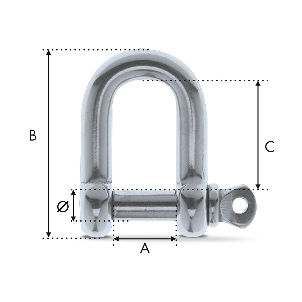 Cette manille droite en acier inoxydable AISI 316 On En Fait Des Tonnes est déclinée en diamètre de 6mm à 20mm pour l'axe et de 14mm à 40mm pour l'ouverture [se référer au tableau détails techniques en bas de page].