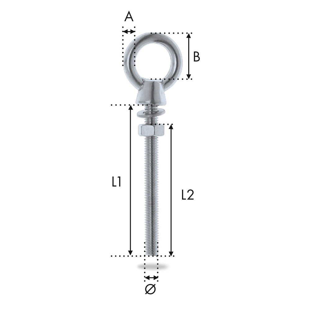 Pour choisir son piton boulon à œil, vérifier le diamètre ainsi que la longueur.