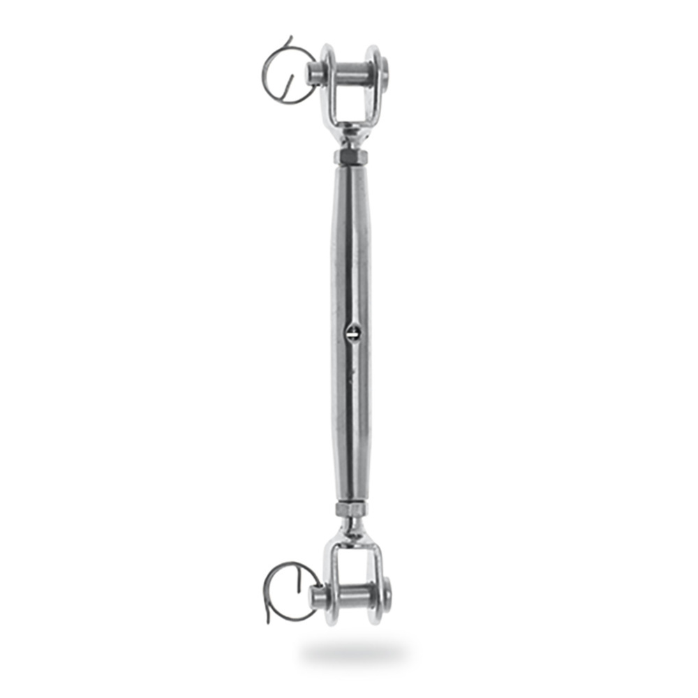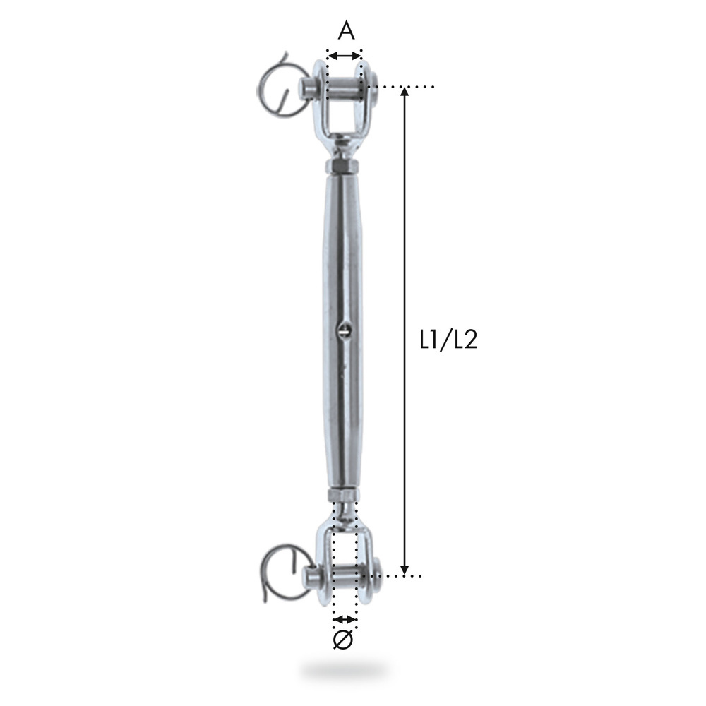 Le ridoir à deux chapes en inox 316L est principalement utilisé dans le cadre d'haubannage, de travaux décoratifs extérieurs, de fixation avec tension de câble en accastillage.