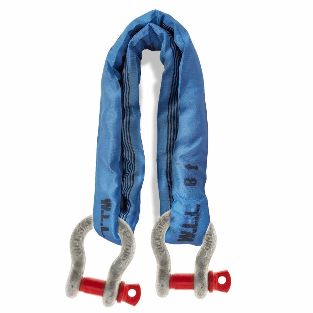 On En Fait Des Tonnes met à votre disposition ces sangles ronde textile de remorquage de 4m à 8 mètres de long, de CMU 4t jusqu'à CMU 8t de coefficient de sécurité 7, conçue en polyester et disposant à chaque extrémité d'une manille lyre Haute Résistance avec axe à visser de coefficient de sécurité 6 (Ø 22 jusqu'à 28 mm selon la sangle choisie) . Ces élingues textile de remorquage vous sont proposées avec une charge de rupture minimale(CRM) de 28 tonnes jusqu'à 56 tonnes.