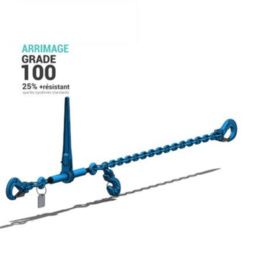 Le système d'arrimage complet Grade 100 en 1 partie avec tendeur pour chaine à cliquet intégré et crochets Grade 100 (ou classe 10) est destiné aux opérations d’arrimage dans le cadre de transport routier, maritime ou aérien. Ce système clé en main permet d’amarrer et de sécuriser le chargement.