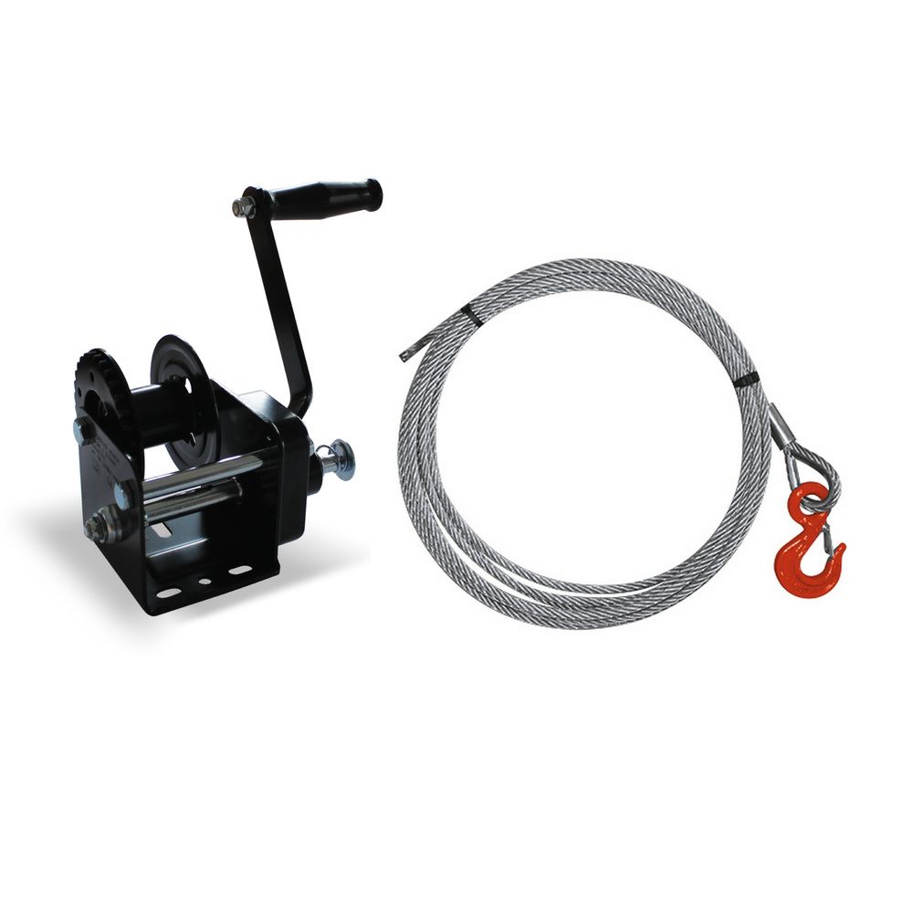 Treuil de halage ou de traction pratique en mobilité sur camions ou remorques, permettant d’enrouler ou dérouler en permanence le câble sur son tambour actionné par une manivelle et avec cliquet anti-retour (ou ‘frein’) qui permet de retenir la charge lors du délestage de celle-ci.